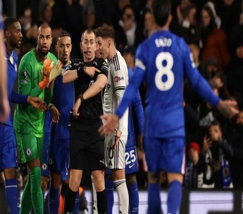 比赛开始后切尔西立马主动进攻,第9分钟恩佐开出角球直接旋到门前,莱诺不敢怠慢将球挡出;第20分钟,恩佐再次角球造险,凯塞多跟进补射被封堵;第22分钟,场上风云突变,哈里-威尔逊高速前插即将形成单刀,库库雷利亚不得已拉人犯规,因为是破坏绝佳的单刀机会,西班牙边卫被红牌直接罚下;切尔西本赛季英超已领到五张红牌,队史单赛季仅次于2007-08赛季。