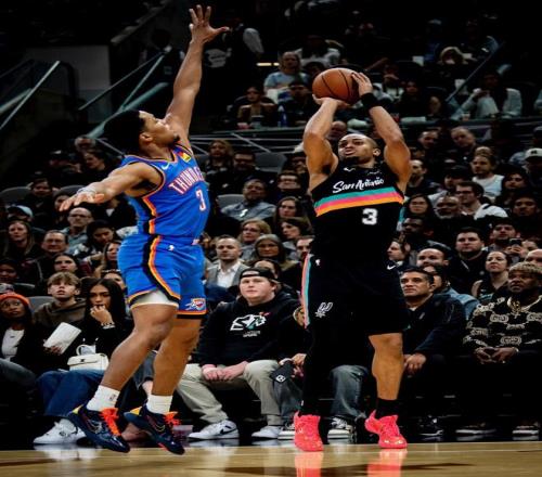 第二节马刺攻势不减,巴恩斯接连命中三分,文班亚马和尚帕尼先后命中,一波10-2后马刺52-30将分差拉开到20分以上。后半段维金斯和巴恩海泽利用三分,帮助雷霆缩小差距。半场比赛战罢,马刺73-58领先15分。