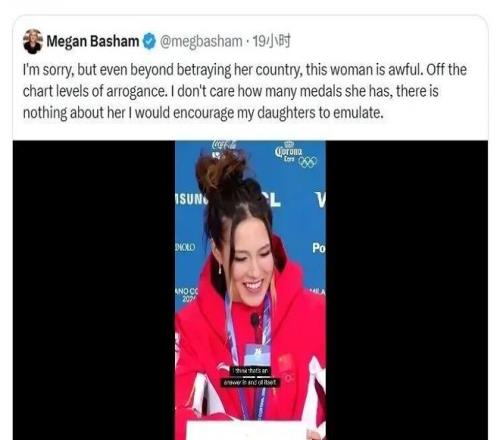 舆论的暴力同样致命。北京冬奥后,美国部分声音骂她“叛徒”,国内也有人质疑她的身份摇摆。米兰冬奥有记者刁难:“你觉得自己是夺了两枚银牌,还是丢了两枚金牌?”